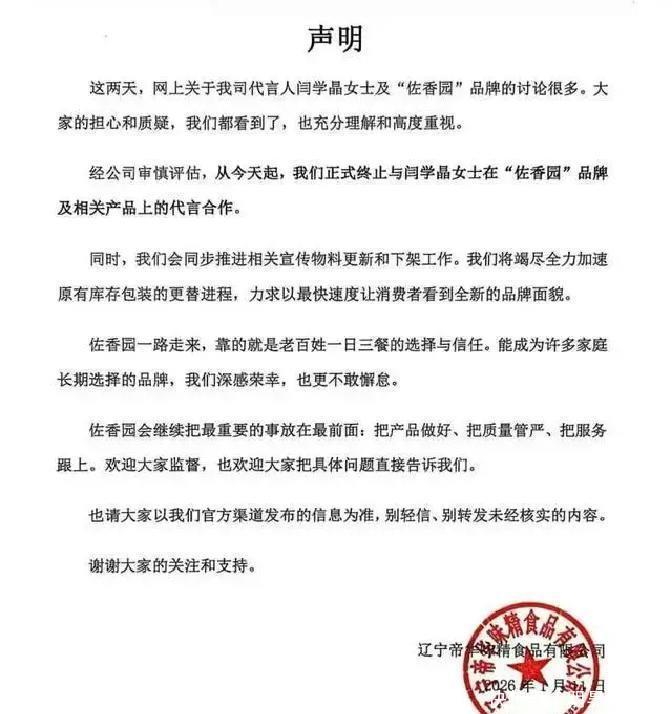 品牌端动作很快。她代言多年的佐香园,第一时间宣布终止合作,紧跟着说要换包装、保留追责;另一个合作方统厨也宣布切割,停产旧包装、未来不再请明星。这不是拖延,也不是“观望”,而是一种清洁力。商家看重的是“能卖”,一旦代言人让顾客不愿意碰货,合作立刻会变成亏损。平台也出手了。到了十号,她的短视频账号被设置为禁止关注。对靠直播和短视频维持热度的人来说,这是把流量阀门拧死。你还能看旧内容,但新粉丝进不来,持续变现变成一地鸡毛。