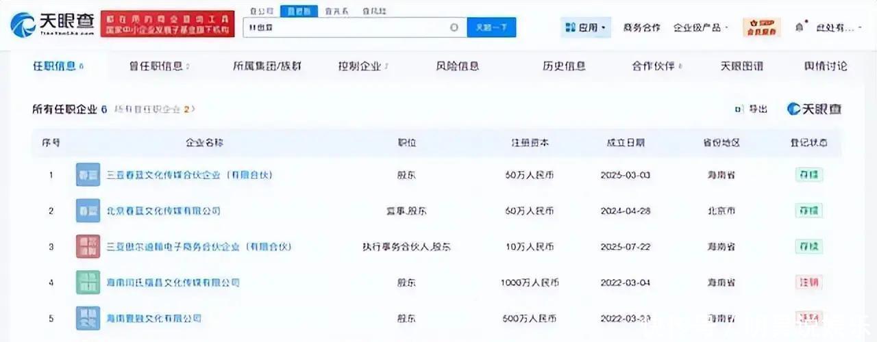 再瞧穿戴。直播里的那只欧米茄星座,官网标价七万多;身上的PRADA连帽外套,一万出头;肩上挎的经典款包,打眼就十二万。这身行头,不费劲就顶上儿子大半年的片酬。更别说她做头部主播的广告,六十秒一条就十来万,带货每月稳定在“千万成交”的水平,按行当里的提成算法,二百万的月收入不是神话。这些数字把“补贴儿子”那句,推得更尴尬。家里还不是只有演艺收入。她儿子林傲霏名下连着几家企业,传媒、影视、数字营销都做;母子俩在三亚还有合伙企业,共同持股,注册资金不算小。拉出这张商业版图,想说“日子紧”,不太能拿到同情票。